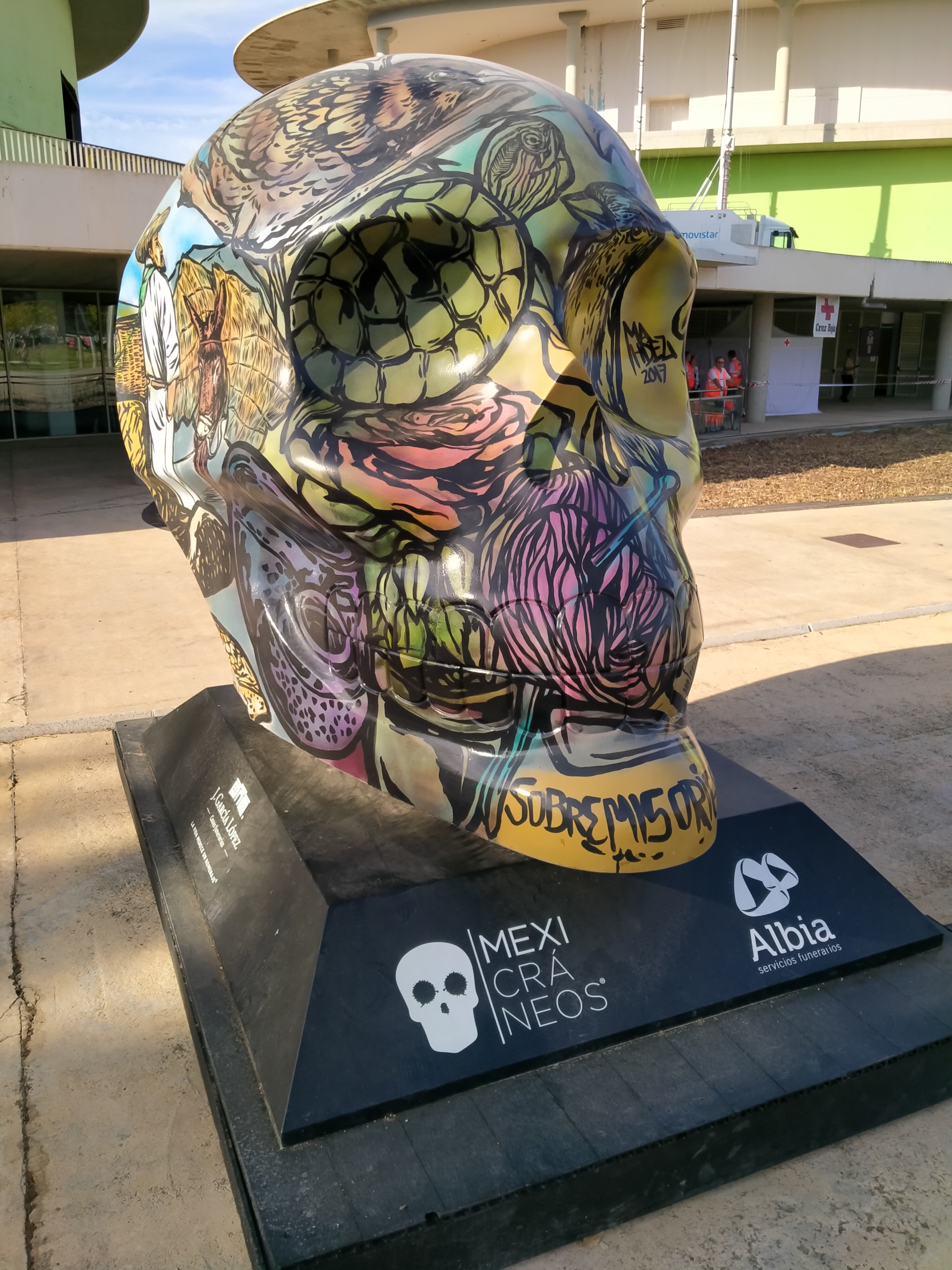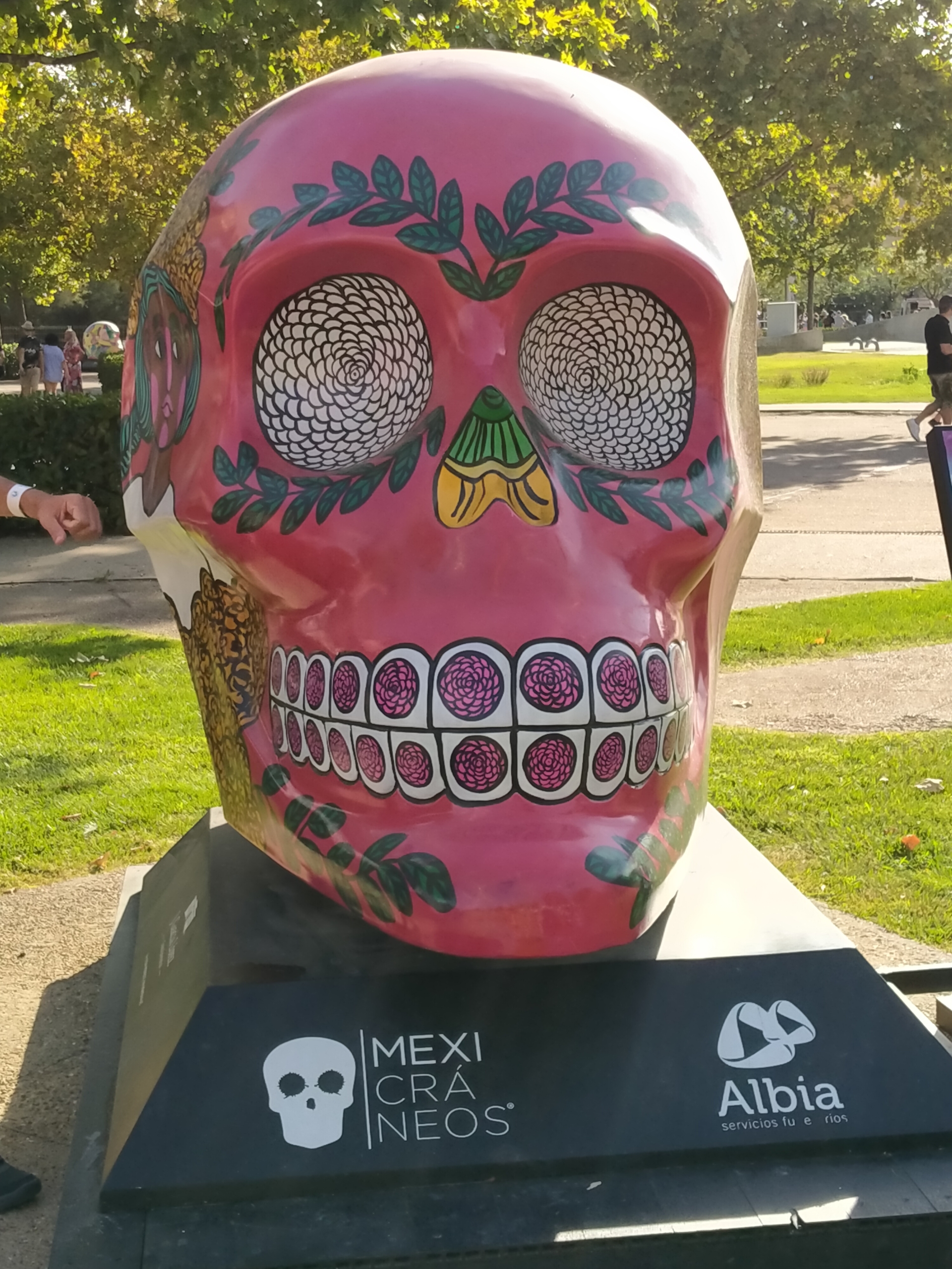 Eran las seis de la tarde cuando pusimos el pie en el recinto. El sol era de justicia y se escuchaban acordes de música a lo lejos, eran Sidonie actuando en el escenario principal. Antes de ellos, Miss Cafeína habían sido los encargados de inaugurar Vive Latino. Lo primero que hicimos fue inspeccionar el terreno, dar una vuelta de reconocimiento para ubicar las barras, los espacios de gastronomía y los baños y ver las enormes calaveras pintadas que daban forma a la exposición “Mexicráneos”.