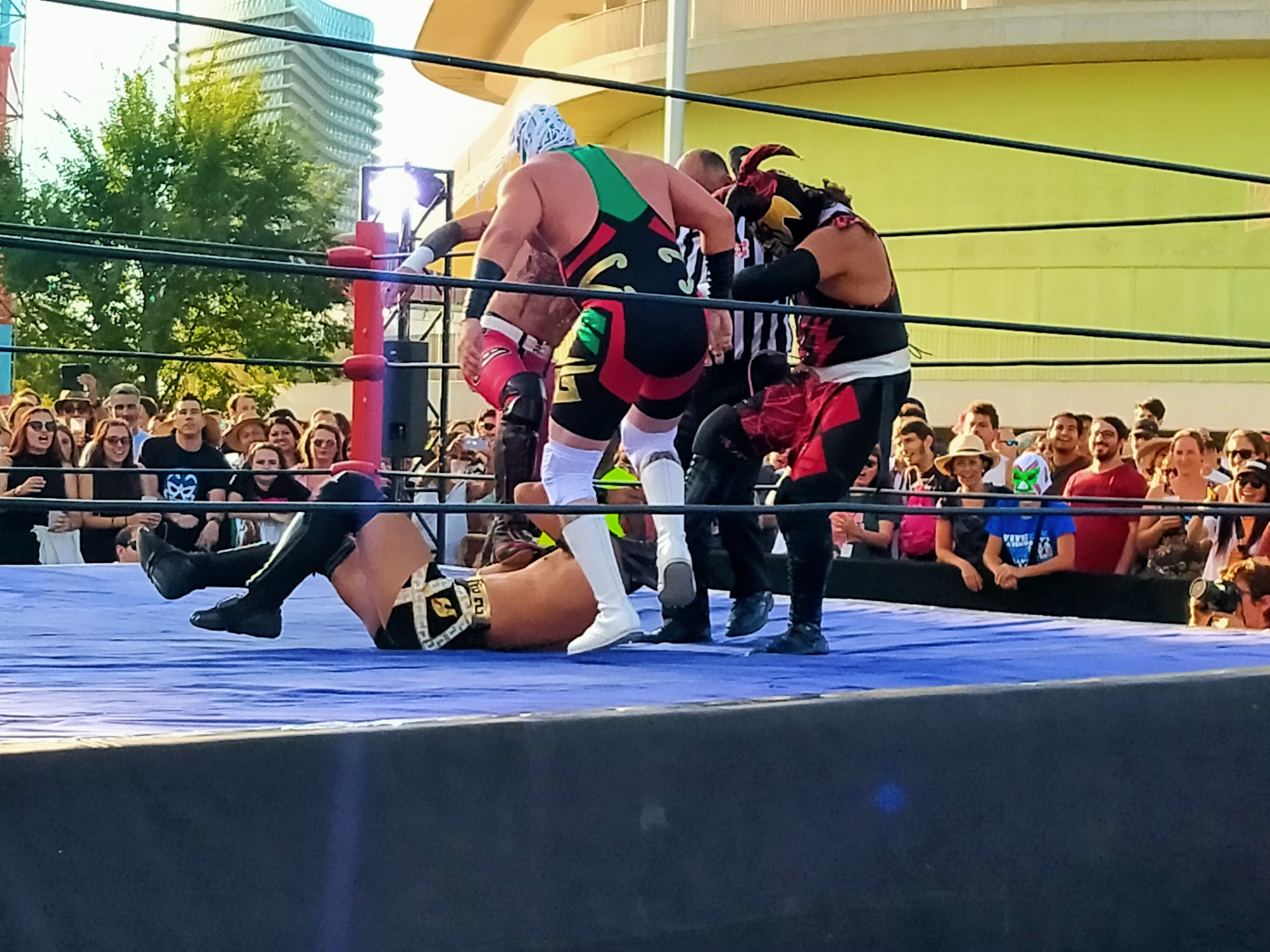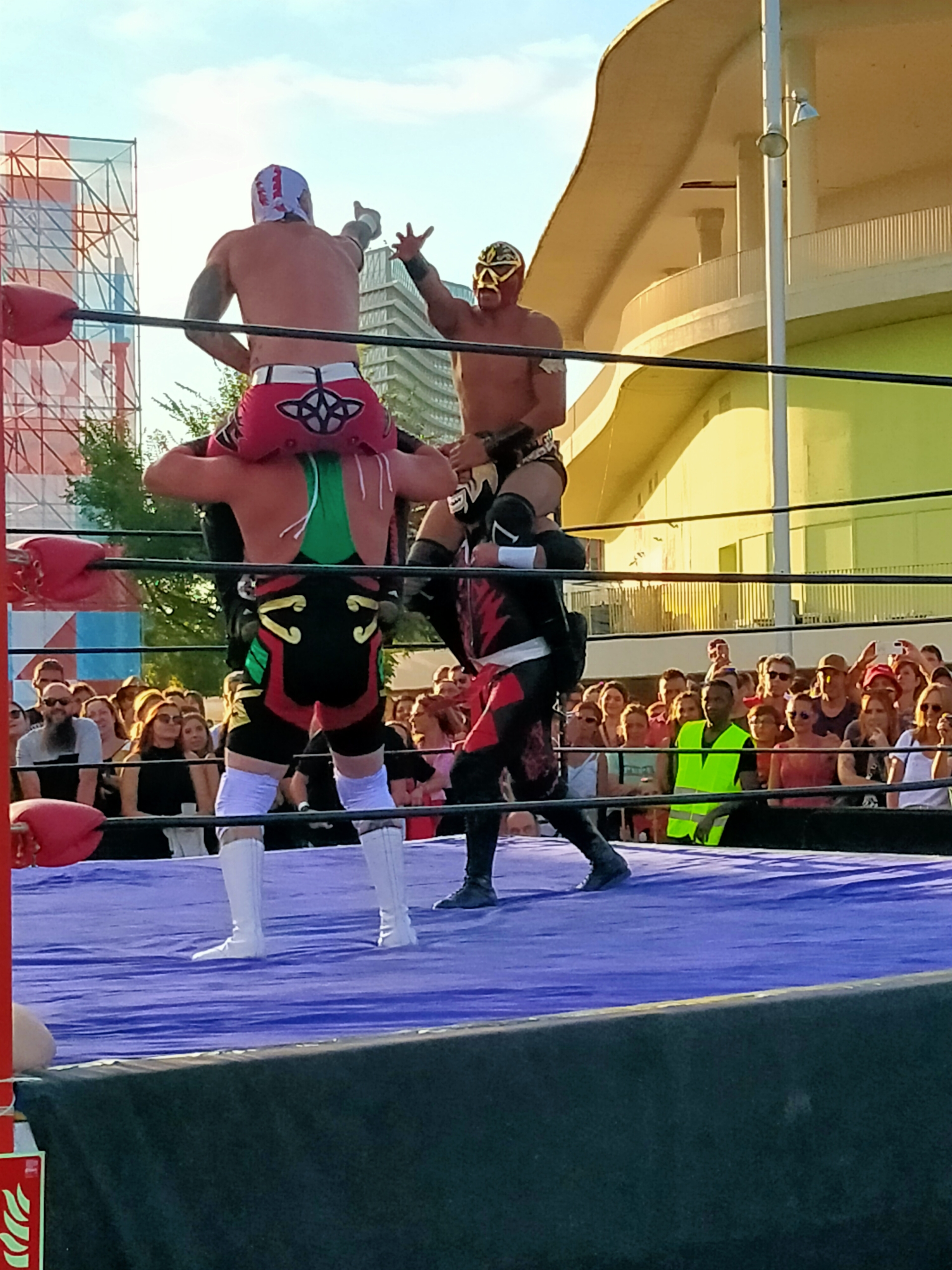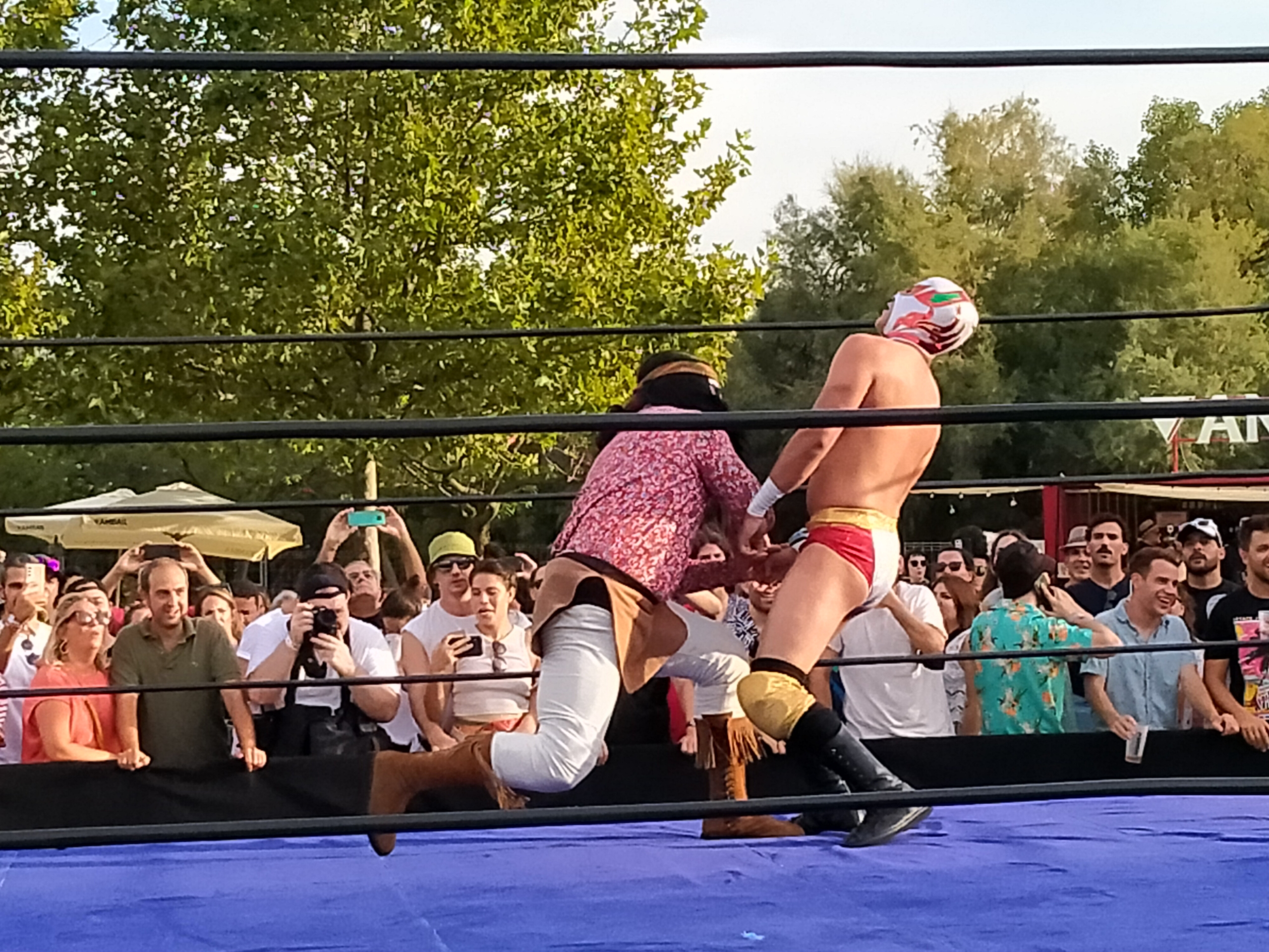 Al poco rato, estábamos al pie del escenario donde tocaban Babasónicos, veterano grupo argentino que ofreció un desenfadado recital que sonó a rock, a psicodelia y a funk. El final de su actuación coincidía con la primera velada de lucha libre mexicana, así que nos apostamos frente al ring para ver cómo los cuatro púgiles se enfrentaban en un duelo de acrobacias, golpes y vaciles. Nuestro favorito, Cuchillo, no superó la ronda eliminatoria, qué se le va a hacer.