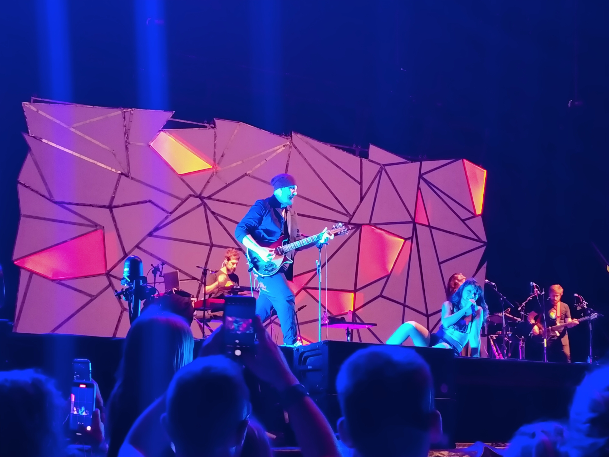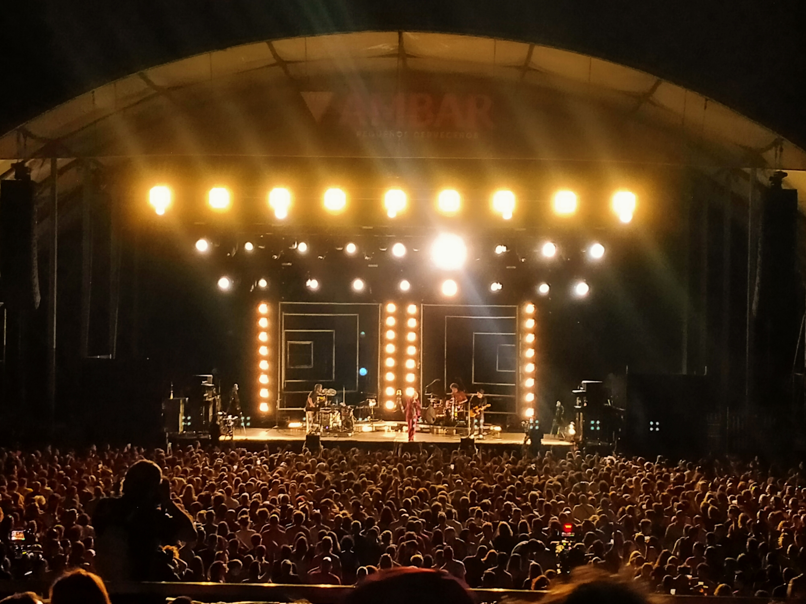 El siguiente turno fue para León Benavente. Ya desde la barra donde estábamos pidiendo unas cervezas nos llegaba el impactante muro de sonido del grupo, que sin duda ofreció la actuación más intensa de la jornada. Desde la pista del anfiteatro del escenario Ambar el juego de luces era espectacular, y el sonido de la banda capitaneada por Abraham Boba fue apabullante, mucho más compacto y contundente que lo que sus grabaciones en estudio reflejan.